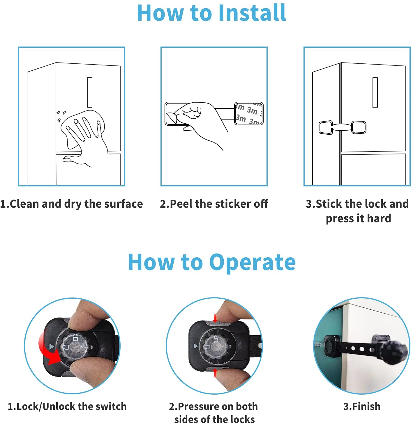 6 * Κλειδαριές ασφαλείας για τα μωρά - Μαύρο χρώμα