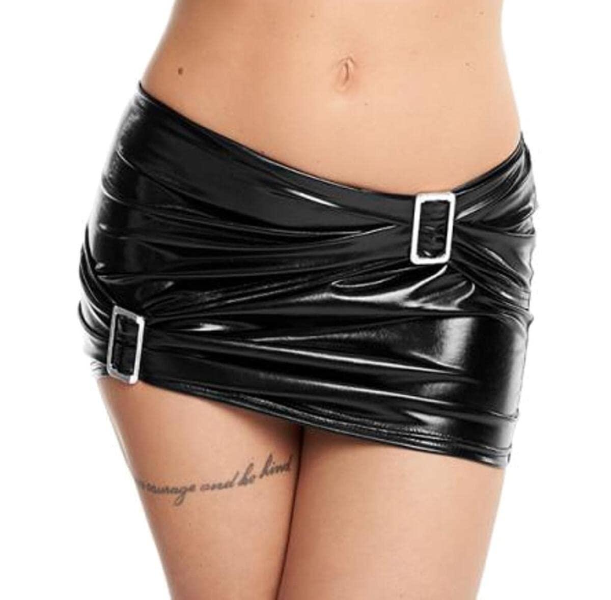 7 Heaven SK082 Mini Skirt Wetlook Vinyl Black Size L