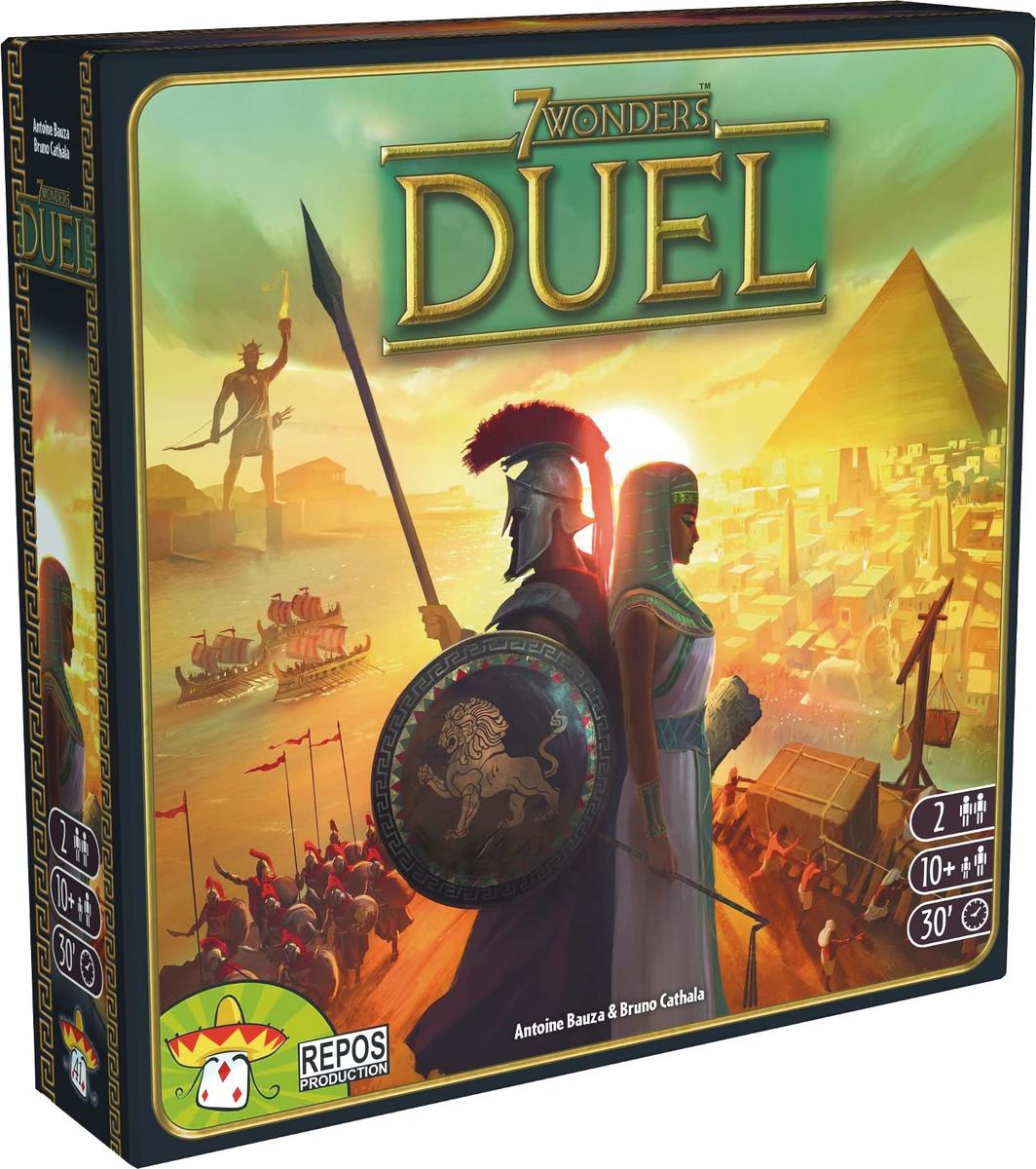 Ανάπτυξε την επιστήμη και τον στρατό σου, υψώστε κτίρια με κύρος και οδήγησε τον πολιτισμό σου στη νίκη! Το 7 Wonders Duel είναι ένα ολοκληρωμένο παιχνίδι που διαδραματίζεται στον κόσμο του 7 Wonders και σχεδιάστηκε ειδικά για 2 παίκτες. Το 7 Wonders Duel προσφέρει ένα νέο σύστημα σύλλεξης καρτών, 3 συνθήκες νικών, επιστημονική πρόοδο, ένα πρωτότυπο στρατιωτικό σύστημα και 12 Θαύματα για συνδυασμό