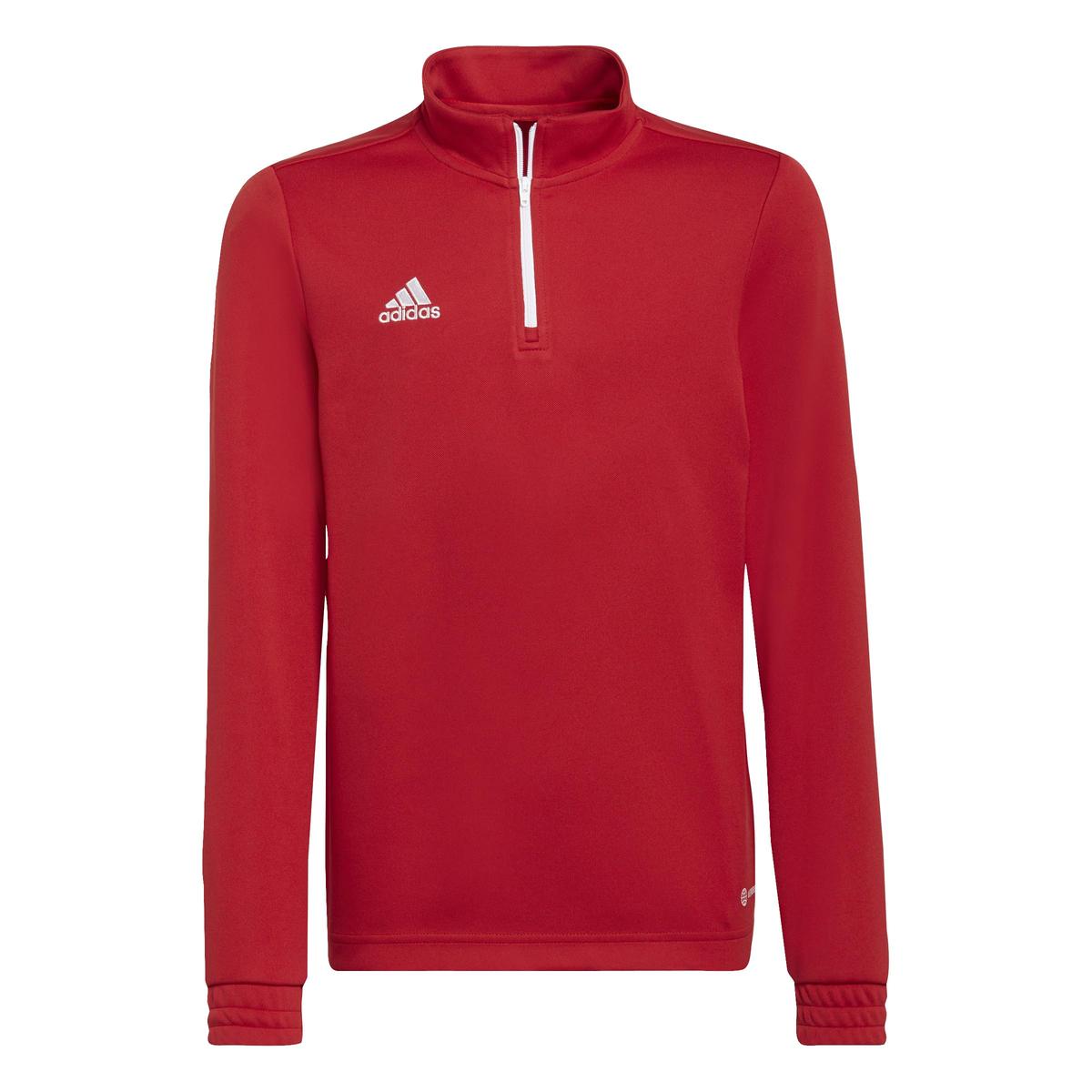 Sweatshirt for children adidas Entrada 22 Tr Top red H57550 Properties: Children's adidas training sweatshirt should be in the wardrobe of every youngest footballer who wants to fully focus on improving their skills during outdoor training. The structure made of polyester fibers has been finished in the form of AeroReady technology, which ensures dry comfort. 1/4 length zipper for easy dressing. Red model with white details. Material: 100% recycled polyester