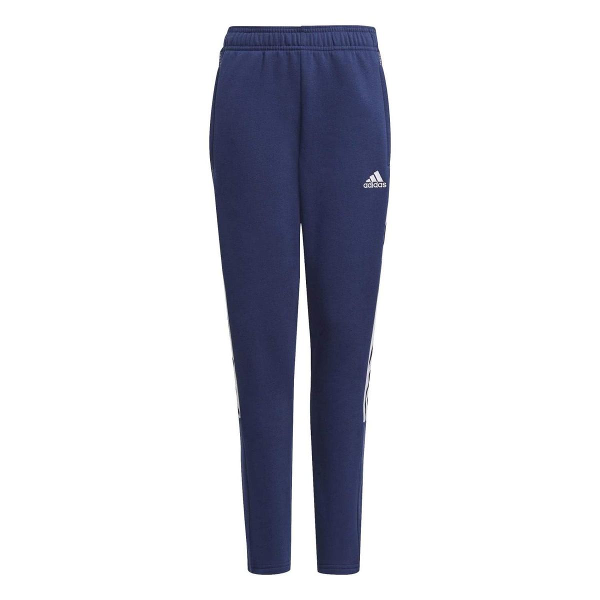 Pants for children adidas Tiro21 Sweat navy blue GK9675 Properties: Adidas Tiro 21 Kids' Track Pants. The navy blue model will prove itself during everyday use and during activity. Elastic waist with drawstring, Two side pockets with zippers. Fitted cut that does not restrict movement. The soft fabric eliminates the risk of irritation. Material: Fleece, 70% cotton, 30% recycled polyester