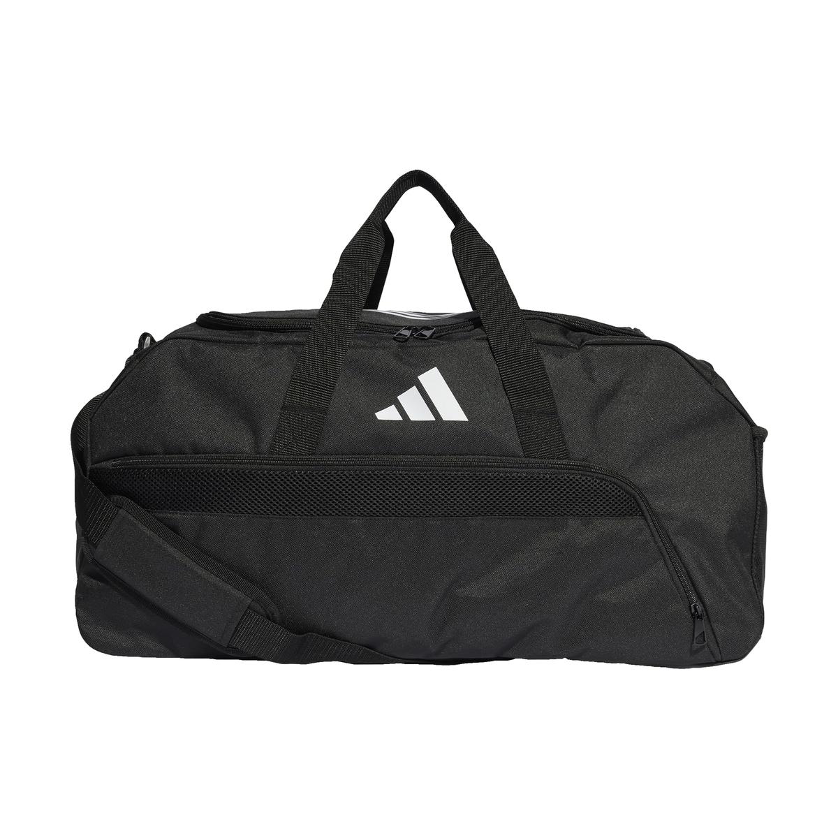 Properties: adidas Tiro sports bag. Made of high-quality materials. Zippered main compartment. Additional pocket on the front. Bottom reinforced with waterproof material. Adjustable shoulder strap and handles. Material: synthetic Color: black
