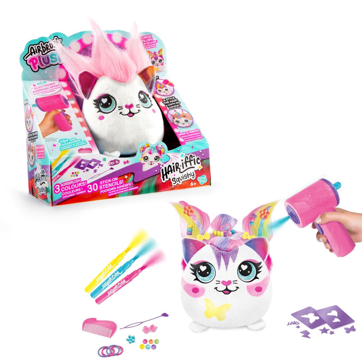 Χρωματίστε το λούτρινό σας με το σπρέι σχήματος πιστολακιού Airbrush, τους δείκτες σας και τα στένσιλ σας. Στυλάρετε τα μαλλιά του με διασκεδαστικό τρόπο με τα συμπεριλαμβανόμενα αξεσουάρ! Πλύνετε το λούτρινό σας και κάνετε το ξανά! 2 χαρακτήρες για συλλογή.