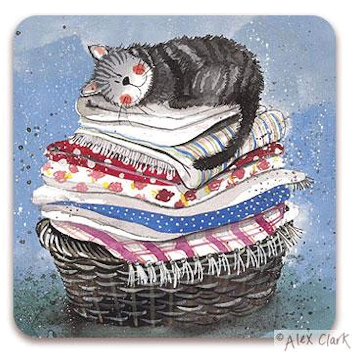 Alex Clark C17 Cat Laundry Basket Υποστρώματα Ποτηριών 10 x 10 cm Λαμινιστό με Φελό