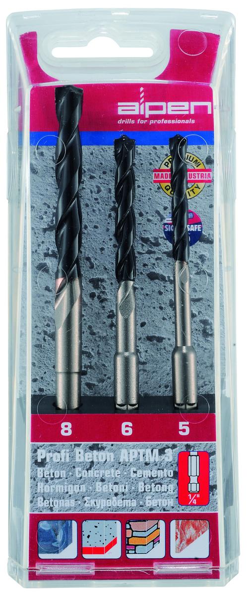 Alpen APTM3 HM Concrete Drill Bit Set 3 Pieces Hex Shank 5 mm, 6 mm, 8 mm
