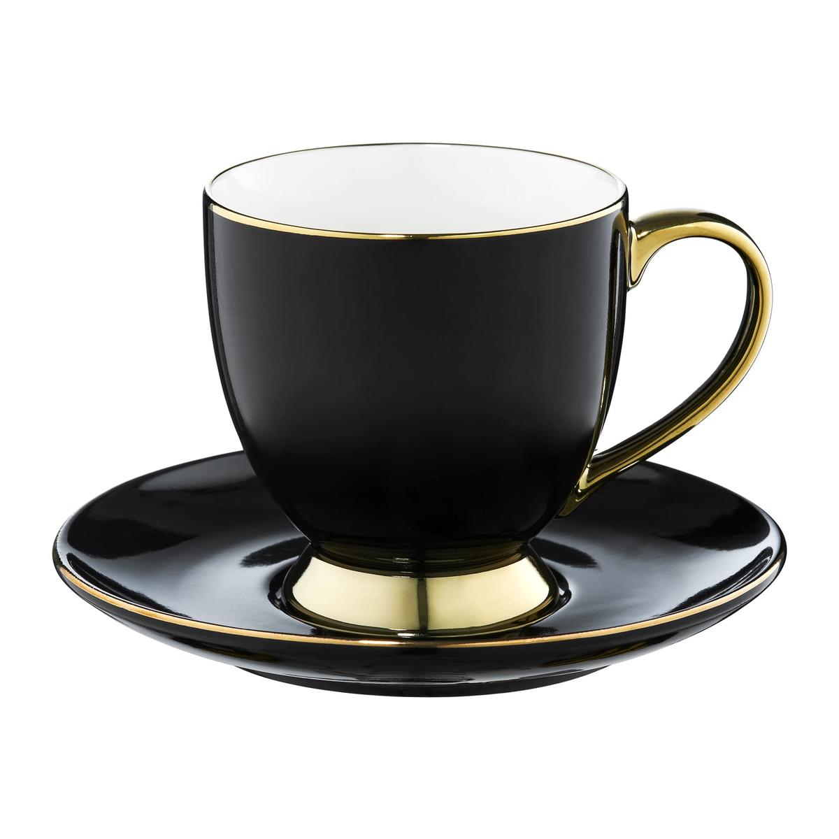 Ambition Πορσελάνης Φλιτζάνι Καφέ με Πιατάκι 220 ml Μαύρο και Χρυσό