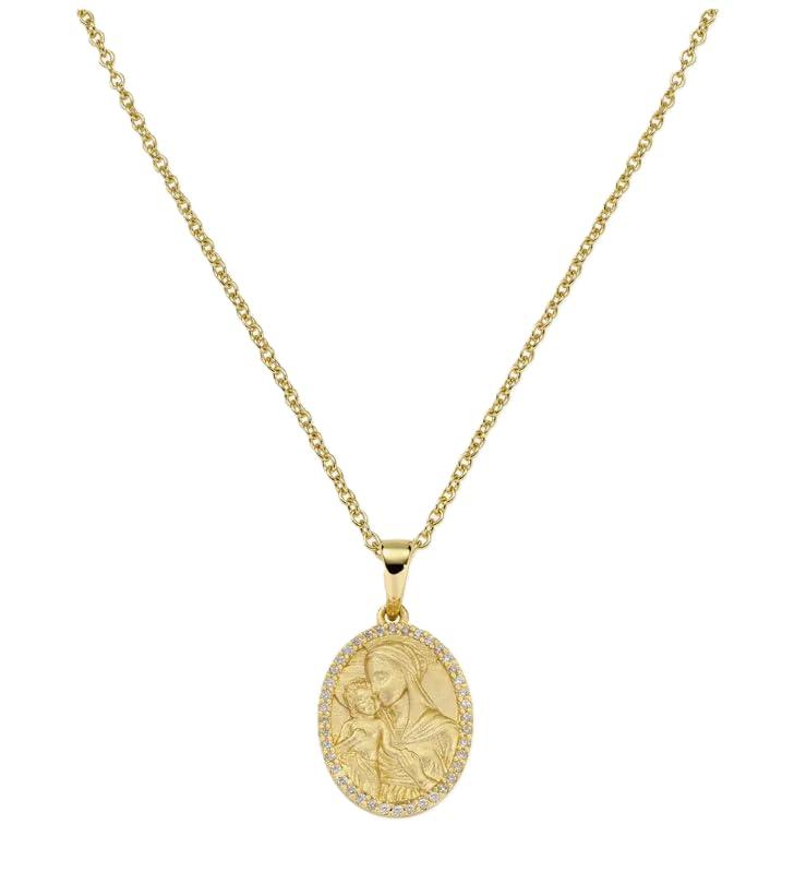 Amen Jewelry CLMABIGBZ3 Necklace Silver Madonna and Child with Zircons