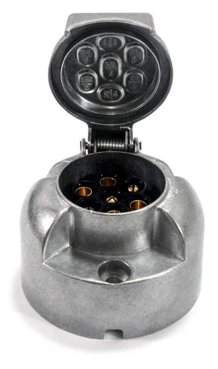 ALUMINIOWE GNIAZDO 7 PIN PRZYCZEPY HAKA 12/24V SPECYFIKACJA: Ilo pinw: 7 Materia: Aluminium Instalacja: 12/24V DANE TECHNICZNE: ilo pinw (biegunw): 7 4 wtyki okrge typu eskiego: rednica 5,5 mm 3 wtyki okrge typu mskiego: rednica 5,5 mm otwory montaowe: 3 rednica otworw montaowych: 5,5 mm