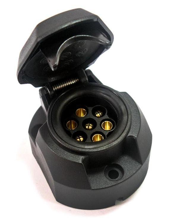 GNIAZDO PRZYCZEPY 7-BIEGUNOWE / 12V PLASTIKOWE Estetyczne, solidne i trwae gniazdo przyczepy wykonane z wysokiej jakoci tworzywa. Uniwersalne, czce instalacje elektryczne pojazdu i przyczepy, przeznaczone dla instalacji 12V. SPECYFIKACJA TECHNICZNA: zdolno obcienia dla 12V: 16A ilo biegunw: 7 4 wtyki okrge - typ eski - o rednicy 5,5 mm 3 wtyki okrge - typ mski - o rednicy 5,5 mm ilo otworw montaowych: 3