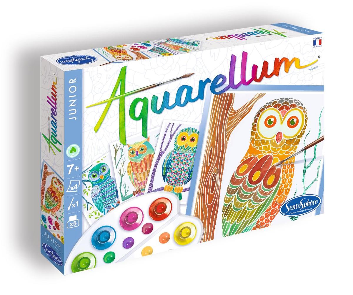 Φανταστικό! Με λίγες σταγόνες χρώματος κάθε παιδί μπορεί να δημιουργήσει πραγματικά αριστουργήματα που απεικονίζουν μυστηριώδες κουκουβάγιες! Το Aquarellum Junior βασίζεται σε μια τεχνική μασκαρίσματος σε λευκό χαρτί, που επιτρέπει το χρώμα να προσκολλάται μόνο στις επιλεγμένες ζώνες. Το σχέδιο αποκαλύπτεται σταδιακά με κάθε πινελιά και μπορεί να ξαναβαφεί επανειλημμένως για να πάρει την τέλεια εικόνα