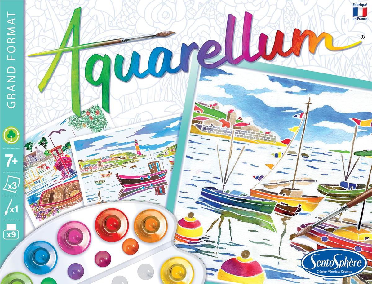 Φανταστικό! Λίγες σταγόνες χρώματος και όλα τα παιδιά θα μπορέσουν να δημιουργήσουν αληθινά έργα τέχνης μεγάλης λαμπρότητας. Το Aquarellum βασίζεται σε μια τεχνική μασκαρίσματος χαρτιού που επιτρέπει στο χρώμα να προσκολλάται μόνο σε ορισμένες περιοχές: το σχέδιο εμφανίζεται καθώς περνάει το πινέλο και μπορεί να ξαναζωγραφιστεί έως ότου επιτευχθεί τέλεια αρμονία. Αυτή η καλλιτεχνική δραστηριότητα