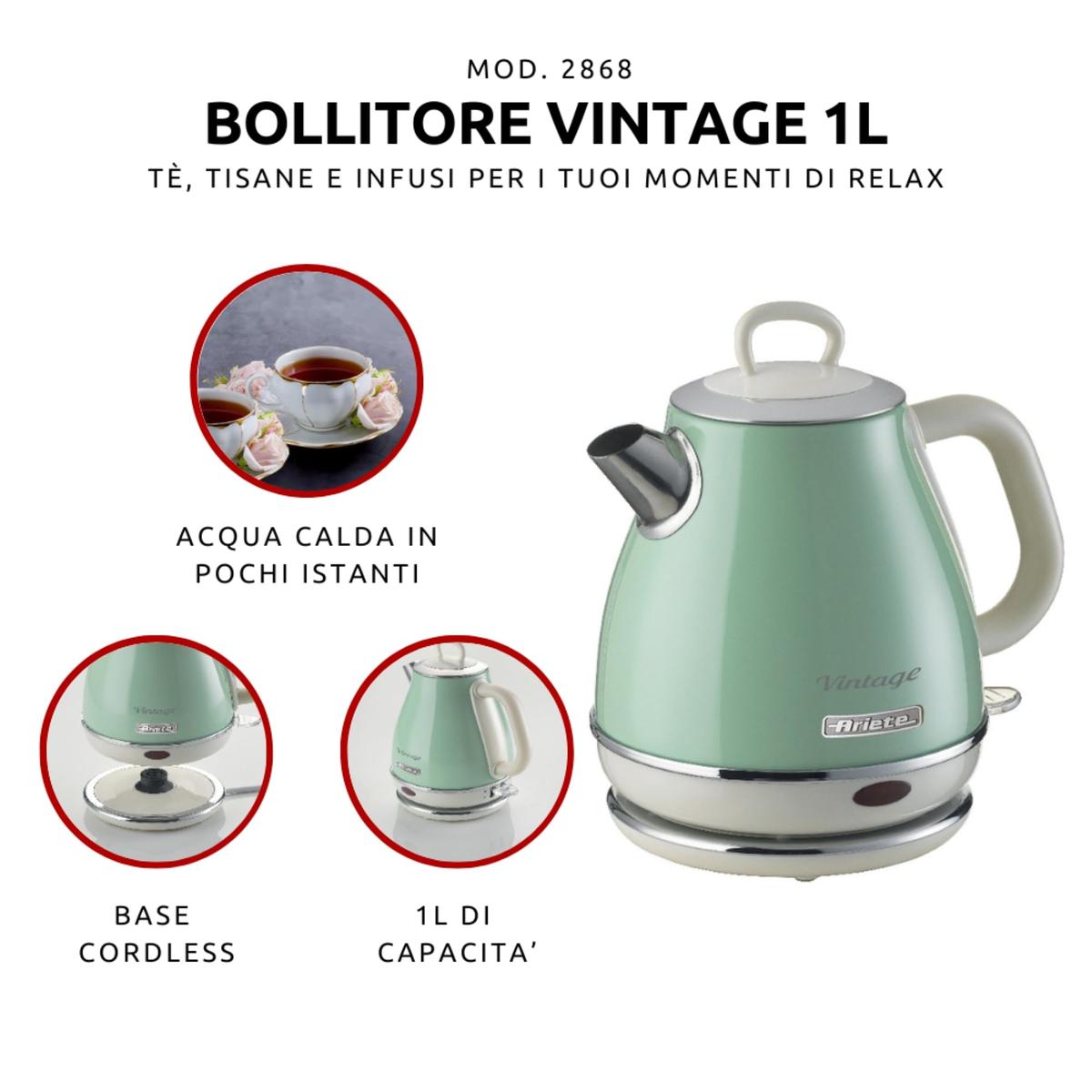 Ariete Vintage Ηλεκτρικός Βραστήρας 1 Λίτρου Πράσινος