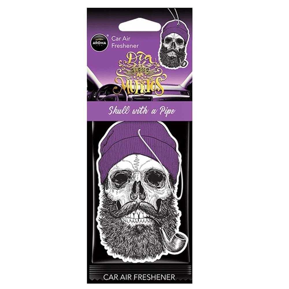Aroma Car Dia de Los Muertos Skull Air Freshener With a Pipe Coral Stuff Scent