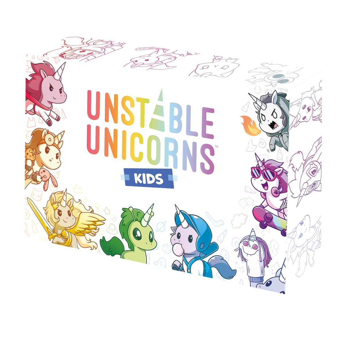 Unstable Unicorns Kids è un gioco di carte che introduce i giocatori più giovani al magico mondo degli unicorni e dei giochi di strategia. Un gioco per 2-6 giocatori, dai 6 anni in su, con nuovi personaggi e illustrazioni adorabili&hellip I bambini lo ameranno!Contenuto: 80 carte, 1 regolamento.