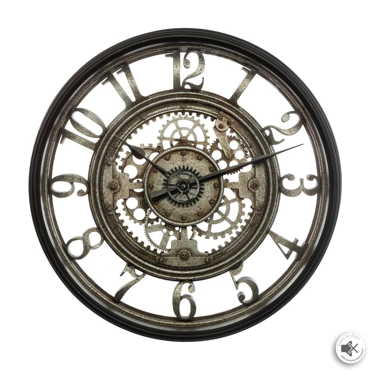 Atmosphera Clock Mechanism 51 cm Black and Aged Metal Effect Polypropylene Frame