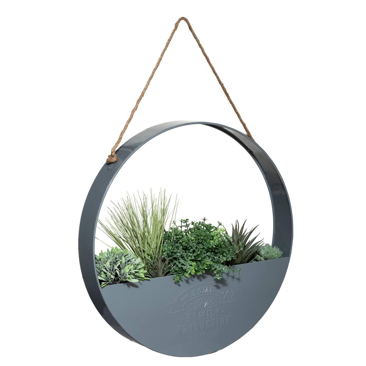 Atmosphera Createur D'Interieur Κρεμαστή Γλάστρα 4 Τεχνητά Φυτά Μεταλλική Γλάστρα 44 x 6.3 cm Γκρι