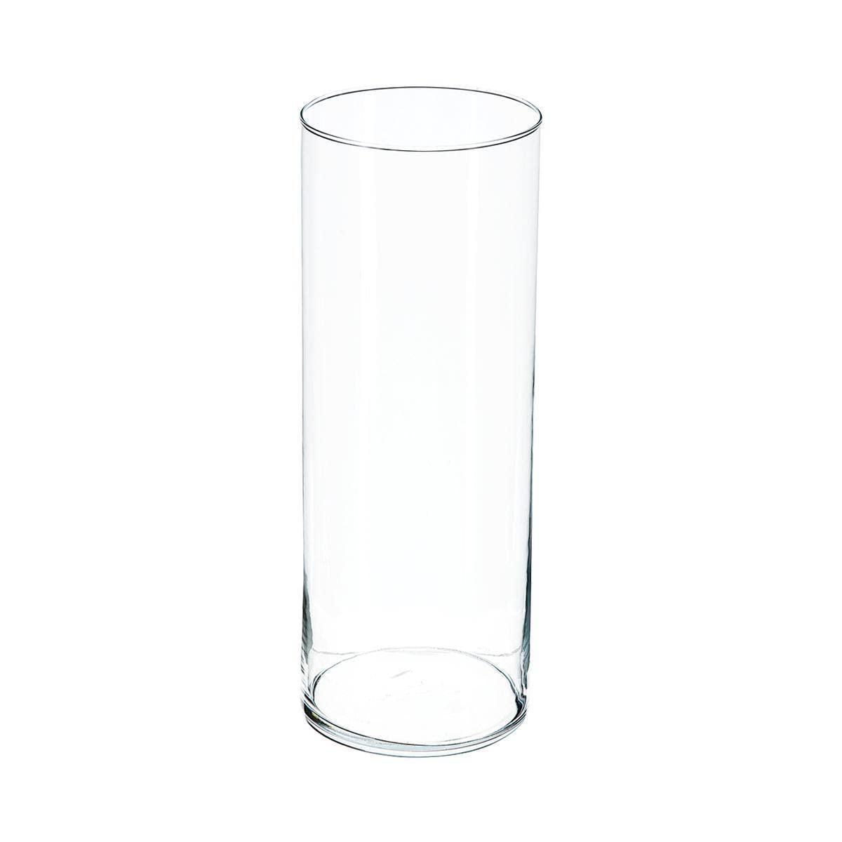 A cylindrical glass vase for displaying bouquets and creating decorations.