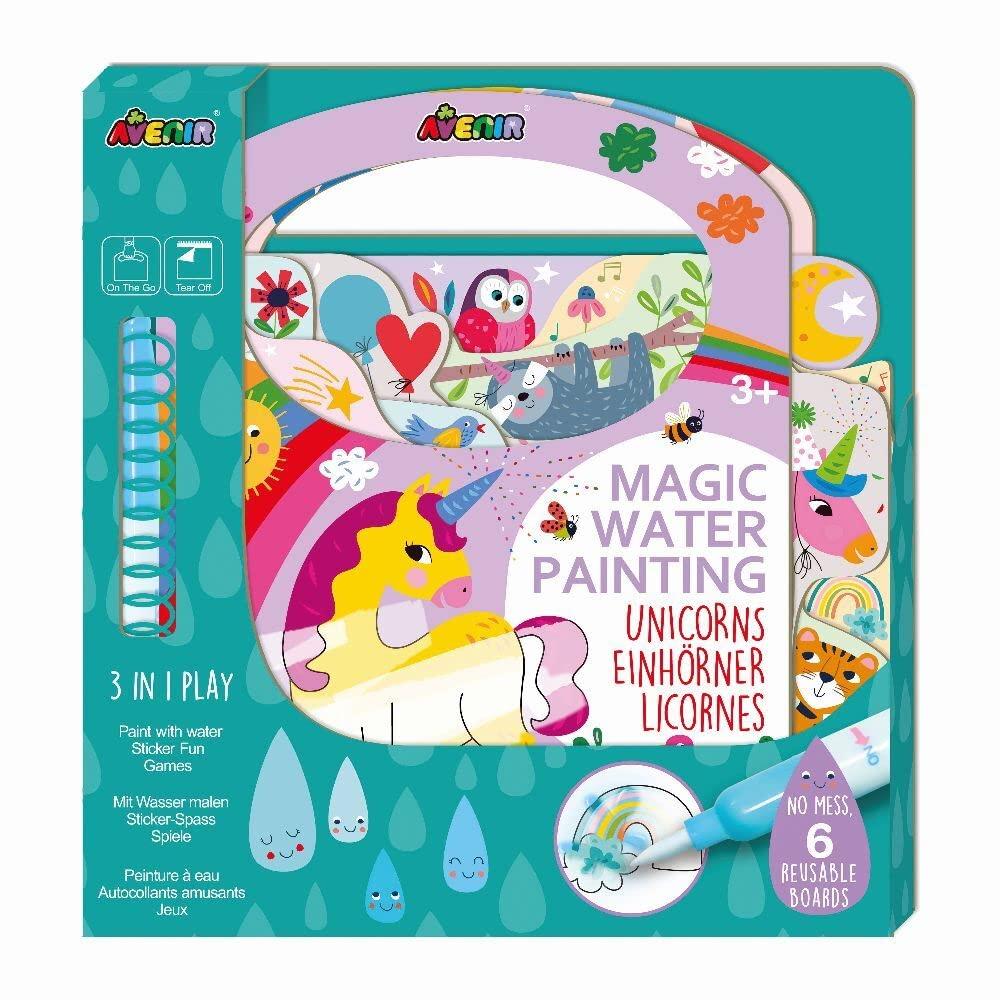 Αυτό το βιβλίο Magic Water Painting είναι 3 σε 1 διασκέδαση με άνετο σχεδιασμό για μετακίνηση. Περιλαμβάνει 6 επανατοποθετούμενες κάρτες ζωγραφικής με νερό με 2 φύλλα αυτοκόλλητων αυτοκόλλητων και ένα επανατοποθετούμενο στυλό νερού. Γεμίστε το στυλό νερού με νερό από τη βρύση, στη συνέχεια σχεδιάστε για να αποκαλύψετε τα χρώματα στις σελίδες - τα χρώματα θα εξαφανιστούν όταν το νερό στεγνώσει, μετά μπορείτε να ξεκινήσετε ξανά, ακριβώς όπως μαγικά και χωρίς κανένα κακό!