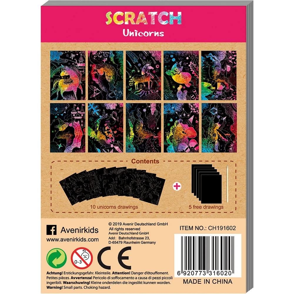 Ένα υπέροχο βιβλίο δραστηριότητας για ταξίδια - 15 διασκεδαστικές σελίδες γρατσουνίσματος γεμάτες περιγράμματα μονόκερων έτοιμα να γρατσουνιστούν χρησιμοποιώντας το ειδικό εργαλείο γρατσουνίσματος. Απλώς γρατσούνισε το μαύρο φιλμ για να αποκαλύψεις τα χρώματα!