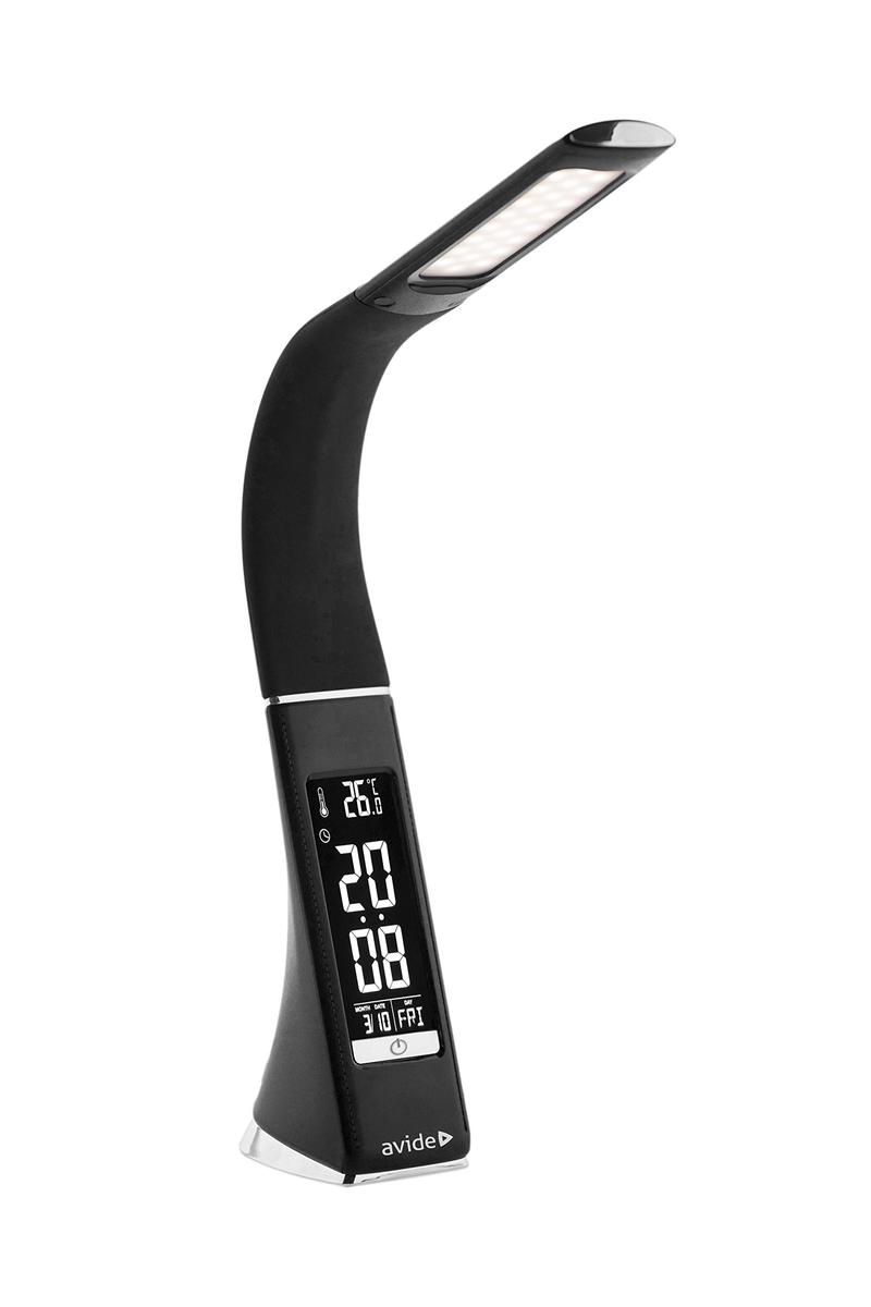LED table lamp AVIDE BUSINESS LEATHER, 6W, 5000 K, 350 lm, dimmable, clock, black