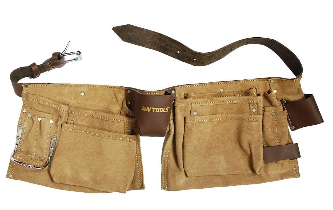 AWTools Leather Tool Belt 11 Pockets Suede Leather