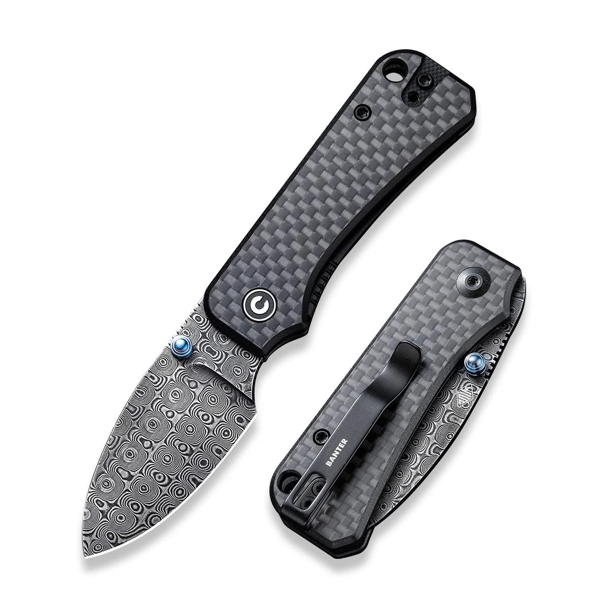 Baby Banter Folding Knife Twill Carbon Fiber Overlay Black G10 Handle Black Hand Rubbed D2 Blade