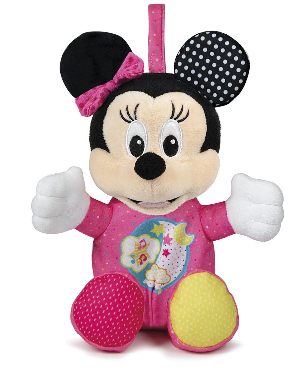 Το απαλό λούτρινο παιχνίδι Baby Minnie, ο νέος γλυκύτατος σύντροφος ύπνου για όλα τα κορίτσια. Χάρη στην φωτεινή κοιλιά, συνοδεύει τα μικρά παιδιά στον ύπνο δίνοντάς τους ένα ευχάριστο αίσθημα ασφάλειας τη νύχτα. Οι γλυκές του μελωδίες είναι τέλειες για να λικνίζουν και να χαλαρώνουν το κορίτσι. Χάρη στο πρακτικό κορδόνι με velcro, αυτό το γλυκύτατο λούτρινο παιχνίδι μπορεί να κρεμαστεί