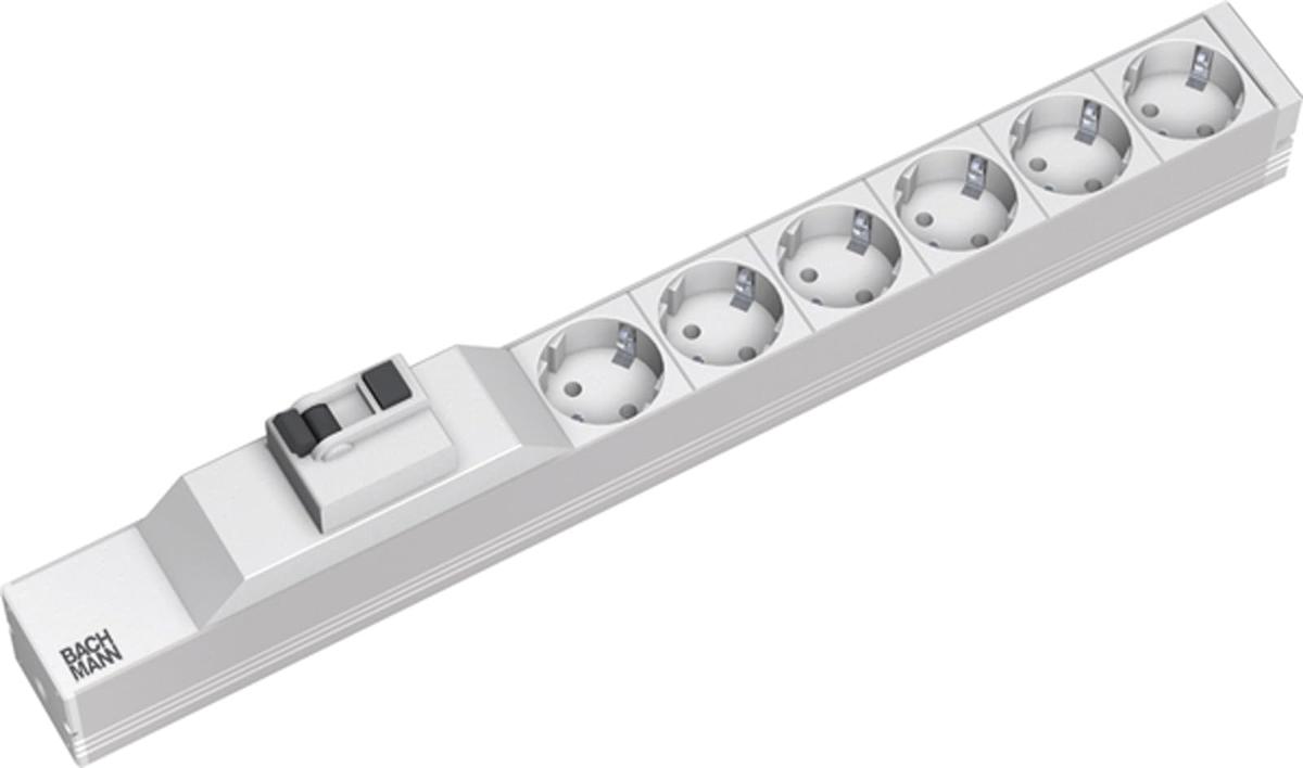 Bachmann 19 Inch Power Strip 6x Socket Outlets 1x RCD 1U Aluminum Profile