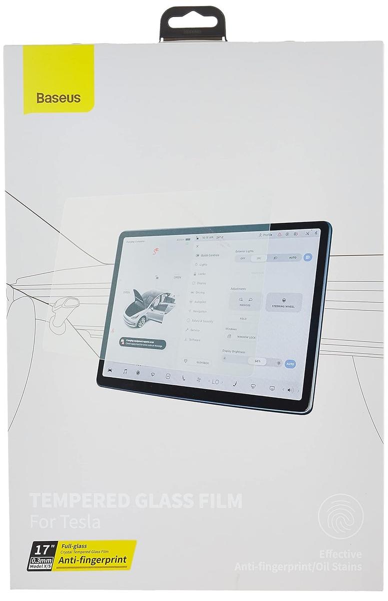 Baseus Crystal tempered glass for Tesla X/S Make your Tesla stay intact. Baseus Crystal tempered glass, which is distinguished by a thickness of 0.3 mm and a diagonal of 17"" and will protect your car's touchscreen, will help you. The glass was designed with the Tesla X/S in mind, so it adheres perfectly to the screen, provides fast touch response and is fingerprint resistant. It also guarantees excellent 8K visibility, is non-reflective and highly scratch resistant.Solid performanceBaseus Crystal tempered glass consists of five layers that prevent scratching and damage with high efficiency. Baseus Crystal is extremely resistant, while at the same time, thanks to its thickness of 0.3 mm, it allows you to maintain instant response to touch. The use of anti-reflective coating makes the screen non-reflective and provides excellent visibility both on a sunny day and a dark night. Easy installationInstalling the Baseus Crystal tempered glass takes seconds and is trivial. All you need to do is use an alcohol-based wipe to remove stains and degrease the screen surface. Then wipe the screen with a dry cloth and use the sticker to remove dust. Sticking the glass will help you with a special tool that will allow you to fit it perfectly to the screen. All necessary accessories are included in the kit. ManufacturerBaseusNameBaseus Crystal tempered glassModelSGBL062502Thickness0.3 mmSize17""CompatibilityTesla X/S