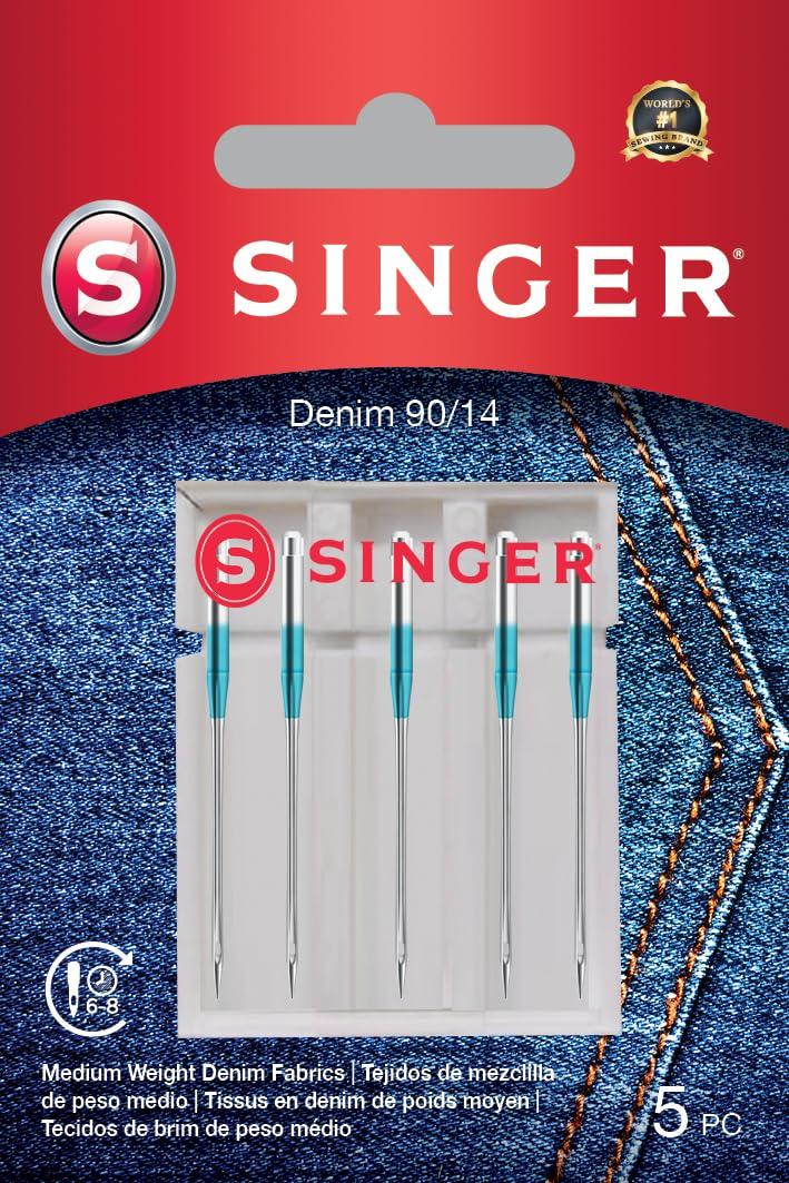 Βελόνες denim για ραπτομηχανές Singer, 5 τεμάχια, αριθμός 90. Οι βελόνες denim έχουν αιχμηρή άκρη και ενισχυμένο σώμα βελόνας. Χάρη σε αυτό, δεν σπάει και τα στιγμάτα δεν παραλείπονται. Οι βελόνες Singer έχουν χρωματική σήμανση του τύπου βελόνας στο στέλεχος: Μεταλλικές (για μεταλλικά νήματα - χωρίς χρωματική σήμανση), Quilting (για quilting - μωβ σήμανση), Universal (γενική)
