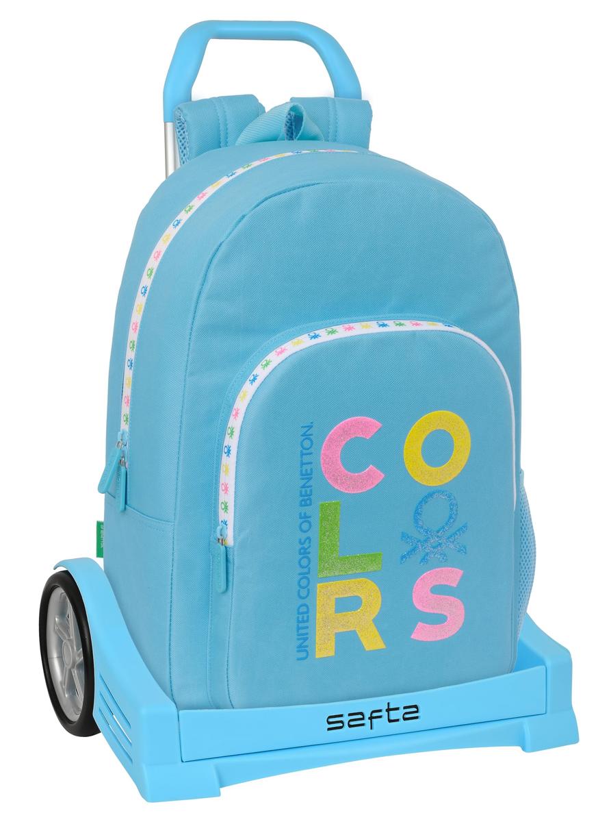 Return to the office without forgetting a single thing! Buy School Rucksack with Wheels Benetton Spring Sky blue 30 x 46 x 14 cm and be the envy of your colleagues!Type: School Rucksack with WheelsSchoolGender: Children'sCompartments: 1 CompartmentIncludes: Front pocket with zipStyle: CasualColour: Sky blueCharacteristics: ReinforcedErgonomic paddingRemovable TrolleyUpper handleAdjustment systemHeight: 85 cmMaterial: Polyester 600DType of fastening: ZipApprox. dimensions: 30 x 46 x 14 cm