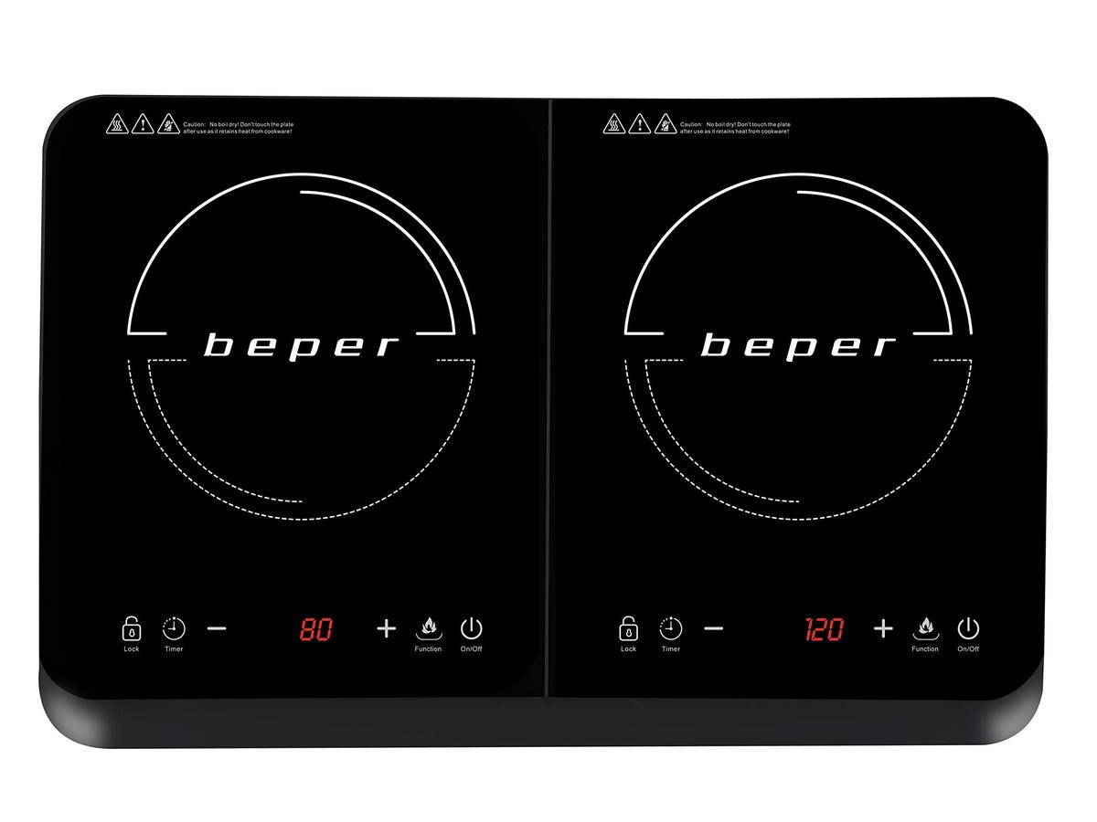 Beper BF.720 Διπλή Εστία Επαγωγής Γυαλί Ανθεκτικό σε Γρατσουνιές Διάμετρος Κατσαρόλας 8 έως 25 cm