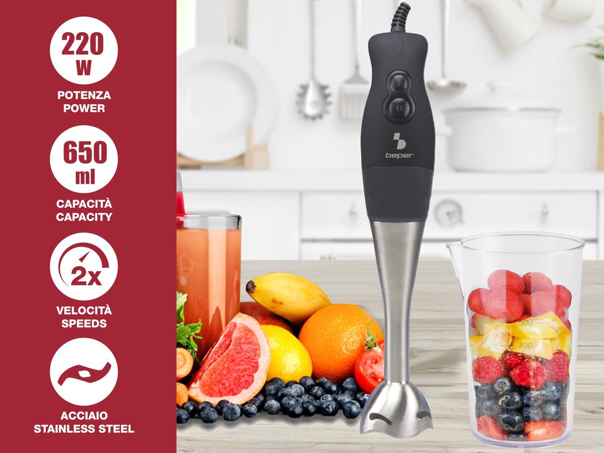 Beper BP.654 Χειρωνακτικό Μπλέντερ Μαύρο και Ασημί 38.5 x 7.9 x 7 cm 0.78 kg