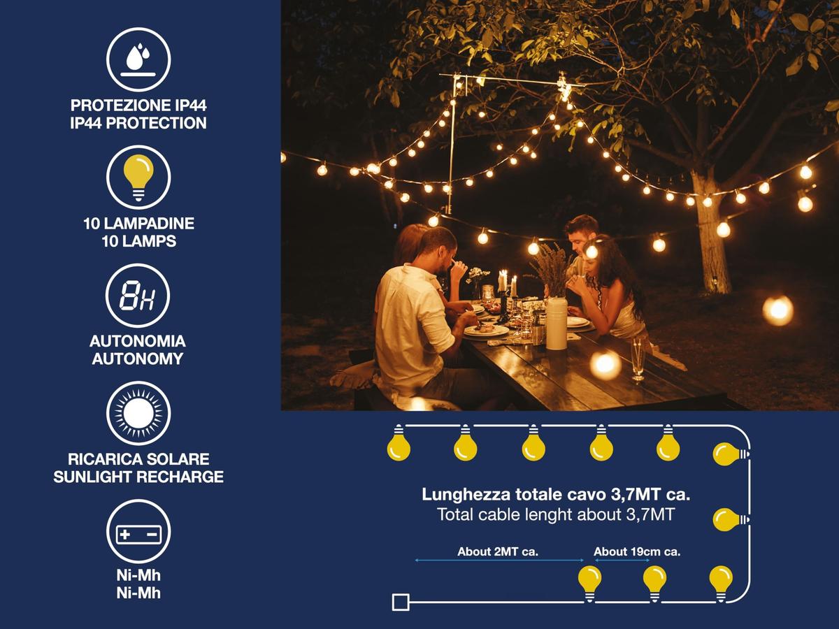 Beper P207ILO500 Solar String Lights 10 LED Bulbs 200 cm Rope Cable Plastic Glass
