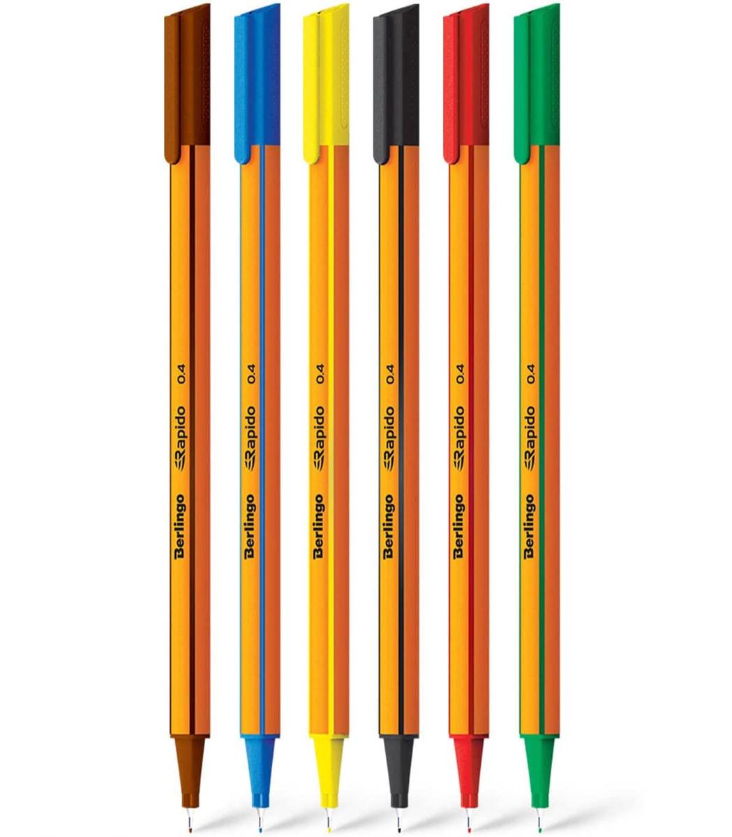 Berlingo Rapido Fine Tip Marker Pens 0.4 mm Assorted Colors Pack of 6