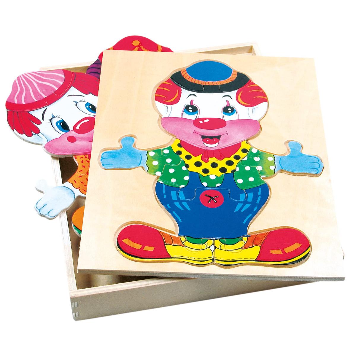 Wooden puzzle ""Dress up clown Fred"", 3+Set includes: wooden box and 32 different wooden pieces.Helps develop fine motor skills, hand-eye coordination, encourages creative thinking.Measurements: 21 x 16.5 x 2.5 cm.Product bears the CE markingManufactured by Bino, Czech Republic.WARNING! Not suitable for children under 3 years. Small parts. Choking hazard.