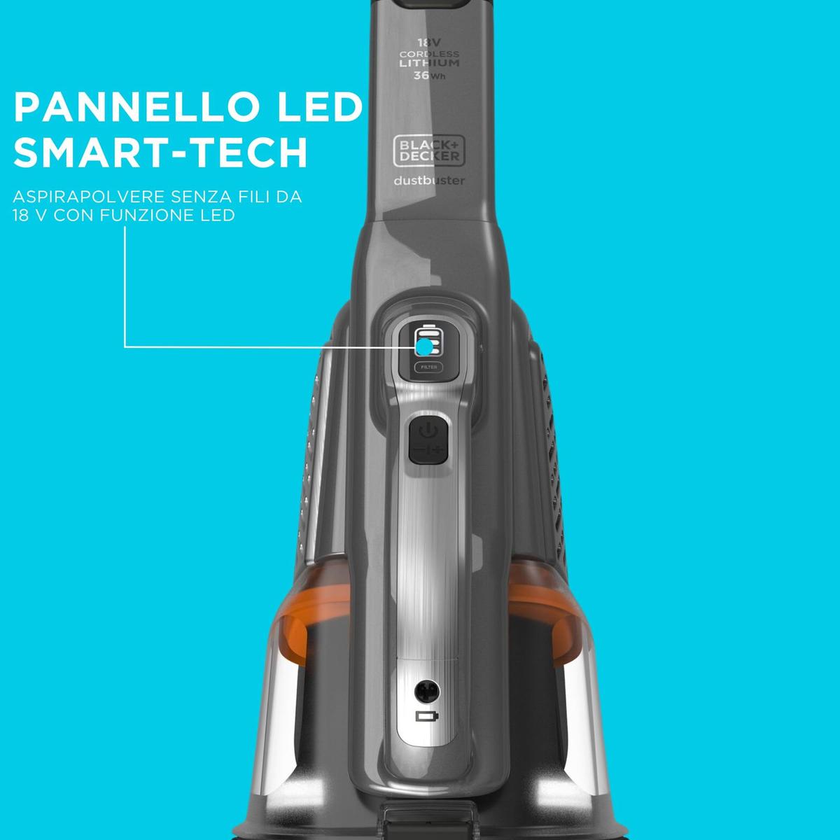 Black+Decker Dustbuster BHHV520JF-QW Ηλεκτρική Σκούπα Χειρός Ασύρματη 18V Με Τεχνολογία Smart Tech Πάνελ LED Μαύρη και Τιτανίου