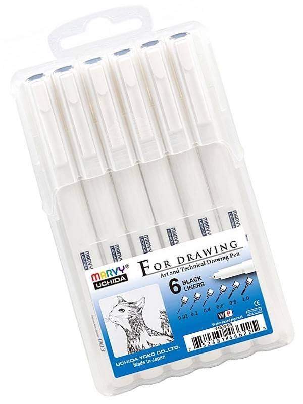 Black Drawing Pens 6 Pieces