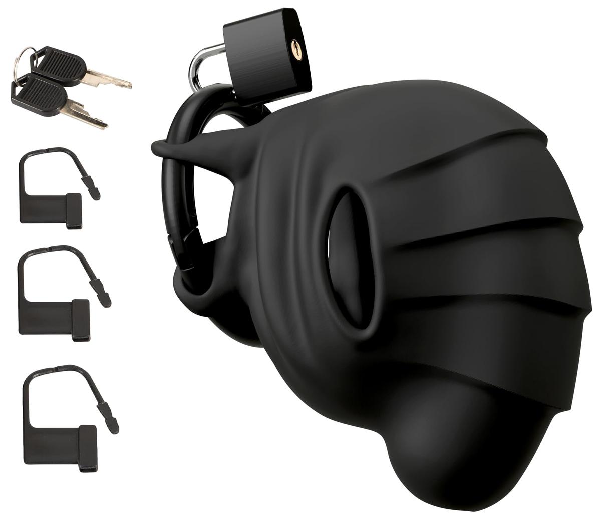 Black Velvets Cock and Ball Cage Silicone Chastity Device Lockable Black
