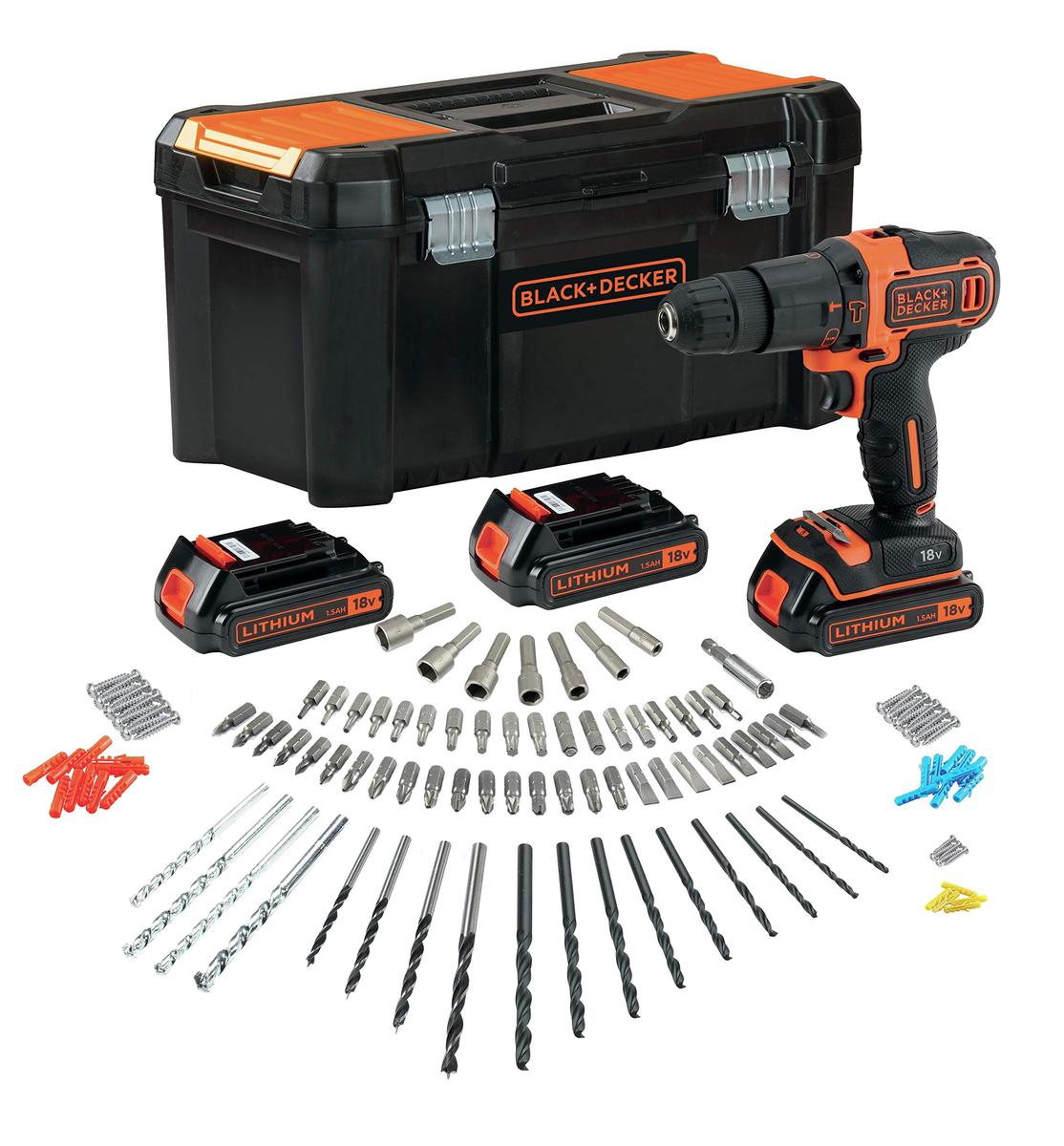 Black+Decker BDCHD181B3A Impact Drill 18V 3 x 1.5Ah Batteries 120 Accessories