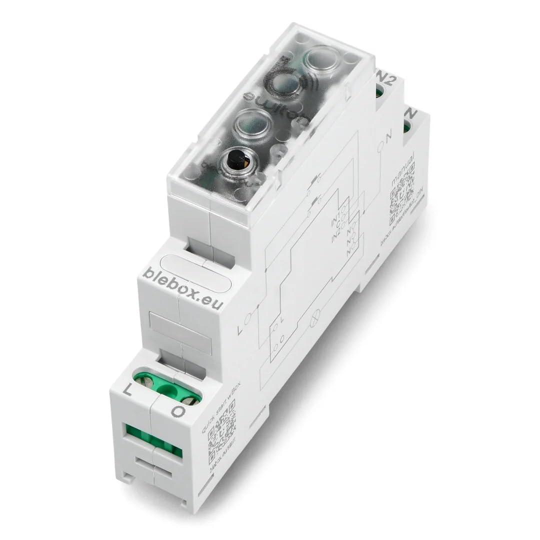 Modu przekanikowy switchbox din Blebox Model: switchbox DIN Przeczik ""ON/OFF"" lub ""WCZ NA CZAS"" duej mocy na szyn DIN BleBox SwitchBox DIN - najwaniejsze cechy: Sterowanie obwodem 3,6kW zapomoc smartfonaHarmonogramy orazzegar astronomiczny (sterowanie owschodzie izachodzie soca)Pomiar mocy izuycia energii elektrycznejPodczanie od1 do2 przyciskw lub/i sygnaw sterujcych DC/AC (czujka ruchu, dymu, przycisk centralny)Monta naszyn DIN wrozdzielni elektrycznejPodwietlany, kolorowy panel przedni sterownika DIN zdodatkowym przyciskiem sterowaniaDodatkowa moliwo stworzenia centralnego przycisku przewodowego orazbezprzewodowego przycisku Wi-Fi zmoduem actionBox (UWAGA: naley zakupi osobno!)Dodatkowa moliwo sparowania pilotw Wi-Fi (uRemote, sRemote, inBox - UWAGA: naley zakupi osobno!)Bezprzewodowa automatyzacja wpoczeniu zsensorami temperatury, deszczu, jakoci powietrza, wiatru itd. (UWAGA: sensory naley zakupi osobno!) Przeczik ""ON/OFF"" lub ""WCZ NA CZAS"" duej mocy na szyn DIN BleBox SwitchBox DIN - specyfikacja: Napicie zasilania: 230V ACZuycie energii: < 1WIlo wyj: 1Typ wyj: przekanikowe, potencjaowe (zwierne do L)Maksymalne obcienie: 16AMaksymalna moc: AC1 (rezystancyjne, cos>0.95): 16A @ 230V AC = 3680W; AC3 (IEC60947-4-1): ~0.5kW @ 240V AC (silnik)""Zakres pomiarowy: 0...3680WRozdzielczo pomiarowa: 1WTryb pomiaru: biecy odczyt, suma za okres, automatycznie obliczanie kosztu zuytej energiiHistoria pomiaru: dostpna online, rozdzielczo 5minIlo wej: 2Typ wej: optoizolowane, logiczne, konfigurowalne, 12-230V AC/DCObsugiwane przyciski: monostabilne (dzwonkowe), bistabilne (tradycyjne, krzyowe) - bez podwietleniaIlo wbudowanych przyciskw: 1Typ wbudowanych przyciskw: tact-switch, funkcja wcz/wyczSygnalizacja na obudowie: kolorowe podwietlenieTyp obudowy: modu instalacyjny DIN-1, szer. 17,5mmWymiary: 90(98,8) x 17,5 x 64,5 mmStopie ochrony: IP20 wg PN-EN 60529Obudowa: ABS / akryl, klasa palnoci V-0 wg UL 94Sposb montau: bezporedni monta na szynie DIN 35mm wg PN-EN 60715Standard komunikacji: Wi-Fi, kompatybilny z Wi-Fi, 802.11gCzstotliwo transmisji: 2.4 GHzRodzaj transmisji: dwukierunkowa, szyfrowanaAPI: otwarte (technical.blebox.eu)Tryb pracy: poczenie bezporednie (jako Access Point), poczenie WiFi poprzez standardowy router, poczenie z dostpem z dowolnego miejsca na wiecie (wymagany jedynie dostp do sieci Internet)Kompatybilne urzdzenia i systemy: Apple iPhone, Apple iPad, iPad Mini, Android, komputery i urzdzenia mobilne wspierajce HTML5Temperatura pracy sterownika: od -20C do 50C
