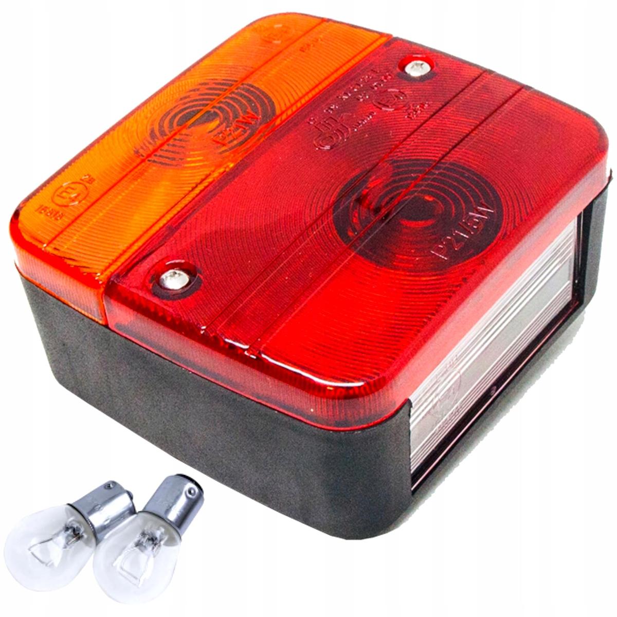 Lampa do przyczepy samochodowejZespolona lampa w ktrej skad wchodzi kierunkowskaz, wiato pozycyjne, wiato stopu oraz podwietlenie tablicy rejestracyjnej. Lamp mona zamontowa z lewej jak rwnie prawej strony przyczep, masz rolniczych, budowlanych, samochodw osobowych, dostawczych lub lawet.Specyfikacja:Materia: Tworzywo sztuczneWymiary: dugo: 10,3 cm, szeroko: 5,4 cm, wysoko: 9,6 cmRozstaw rub montaowych: 55mmFunkcje wiata: pozycyjne, kierunkowskaz, hamowania, podwietlenie tablicy rejestracyjnejHomologacja E42 arwki w zestawie