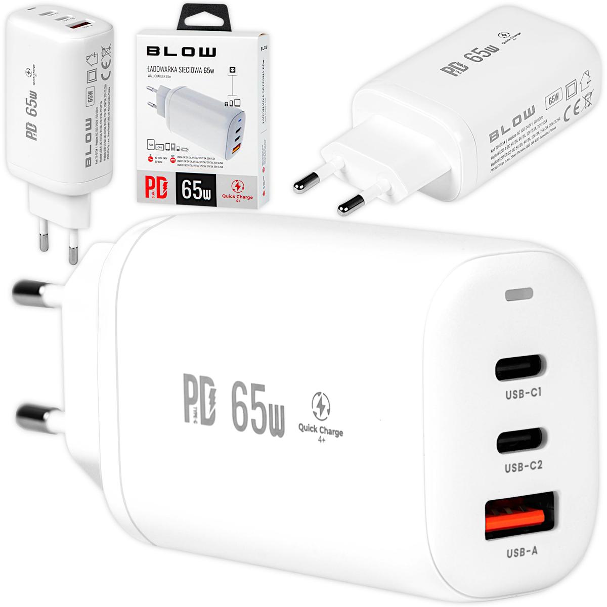 Blow USB Wall Charger 2xUSB-C 65W Fast Charging QC4+ PD White