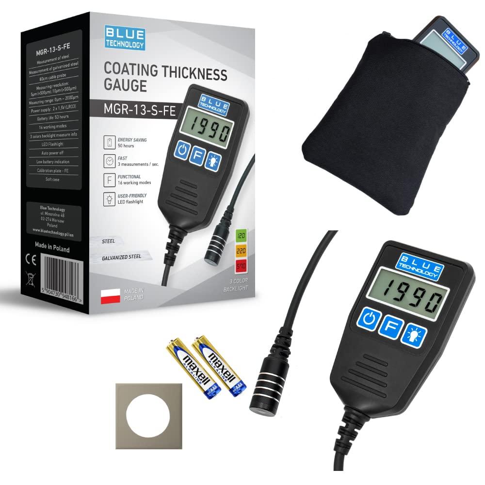 Model:MGR-13-S-FE Kod produktu:B94816 Kod EAN:5904730948166 Producent:Blue Technology Waga brutto: [kg]0,25 Max. Zakres pomiarowy [?m]:0-2000 ?m Rodzaj sondy pomiarowej:na przewodzie Typ sondy:paska Wykrywane podoe:Stal Pami pomiarw:Nie Automatyczne wyczanie:Tak Baterie w zestawie:Tak Rodzaj zasilania:2x AAA (LR03) Funkcja HOLD:Tak Rozdzielczo:5 ?m lub 10 ?m Dodatkowe uwagi:Produkt Polski Pomiar na: stal i stal ocynkowana Typ sondy: wbudowana Zakres: 0 ?m ? 2 000 ?m Rozdzielczod: 5 lub 10 ?m Zasilanie: 2 x 1,5V AAA Czas pracy: do 50 godzin Dwikowa i wizualna sygnalizacja iloci warstw. Szesnacie trybw pracy. Baterie i pokrowiec w zestawie: Tak