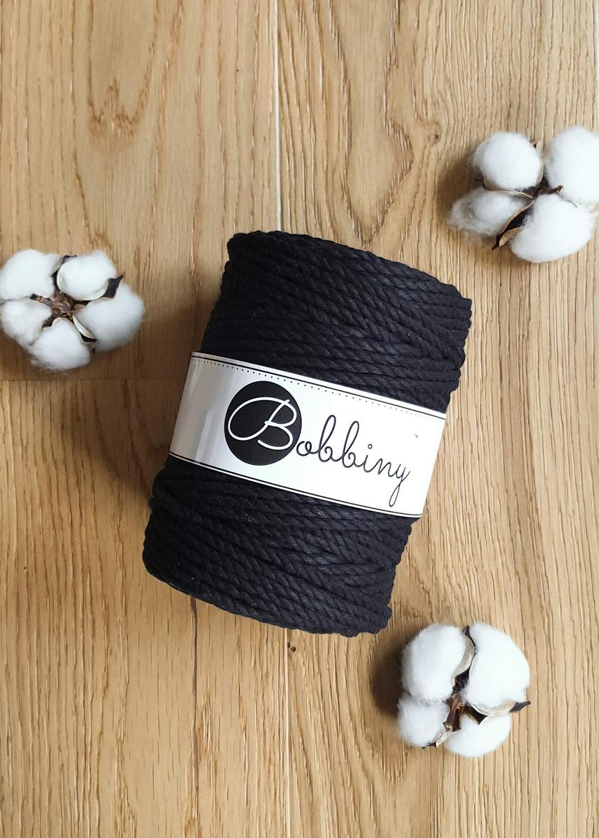 Bobbiny 3PLY Macrame Rope 5 mm x 100 m Black 100% Recycled Cotton