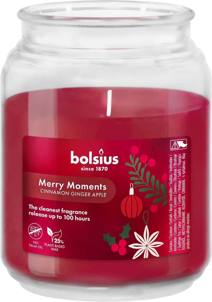 Bolsius Αρωματικό Κερί Μήλο Κανέλα Γυάλινο Βάζο με Καπάκι 10 x 13.5 cm