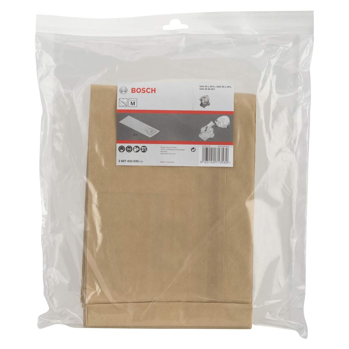 Bosch Χάρτινες Σακούλες Φίλτρου 2607432035 Για GAS 35 Πακέτο 5 Τεμαχίων