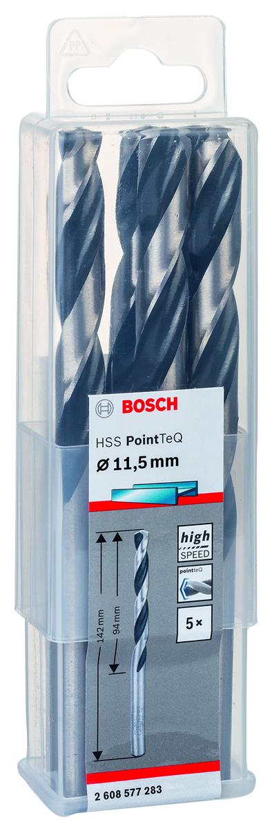 Bosch PointTeQ HSS Drill Bit Set 11.5 x 94 x 142 mm 5 Pieces For Metal, Steel, Cast Iron, Plastic