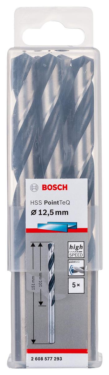 Bosch PointTeQ HSS Metal Drill Bits 12.5 x 101 x 151 mm Set of 5 For Steel, Cast Iron, Plastic