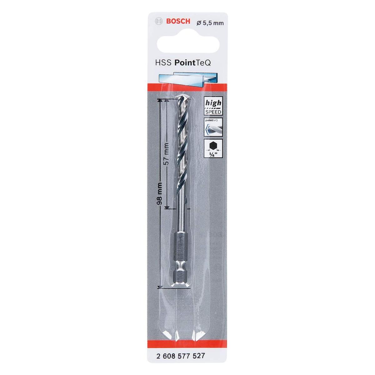 Bosch PointTeQ HSS Spiral Drill Bit 5.5 mm Diameter 57 mm Working Length Hex Shank